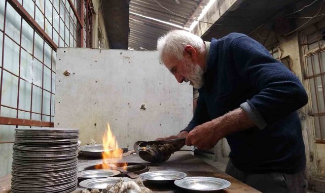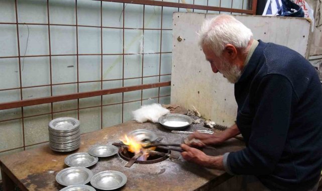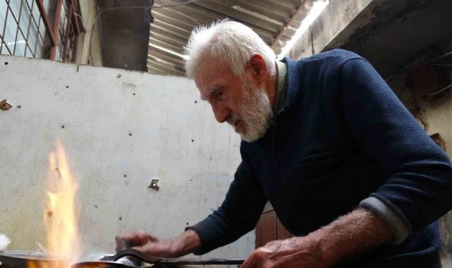 Gaziantep'te 80 yaşındaki kalay ustası mesleğini 70 yıldır sürdürüyor