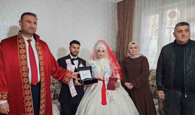 Gelin ve damat nikah salonuna gidemeyince, nikah memuru eve geldi