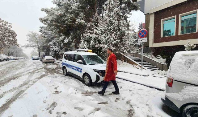 Kar yağışının etkili olduğu Gaziantep'te bu sıra dışı nikah töreni renkli görüntülere sahne oldu. Yeni evli çift ve aileleri, kendilerine bu özel günlerinde destek olan Şahinbey Belediye Başkanı Mehmet Tahmazoğlu'na ve belediye ekiplerine teşekkür etti.