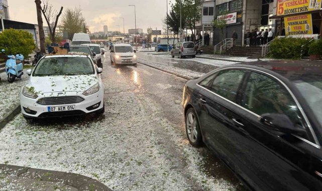 Gaziantep'te yaklaşık yarım saat etkili olan ceviz büyüklüğünde dolu yağışı hayatı felç etti.