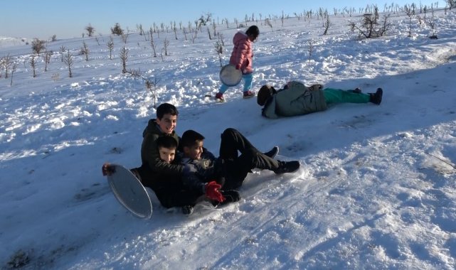 Tepsi, poşet ve leğenlerle kayarak çok eğlendiklerini belirten çocuklar, hep beraber eğlenmenin ve birlikte kaymanın çok keyifli olduğunu dile getirdiler.