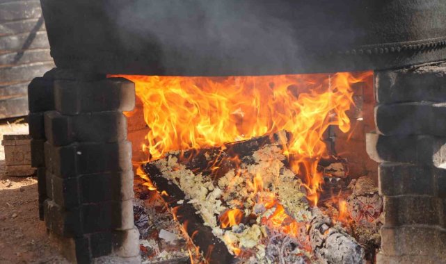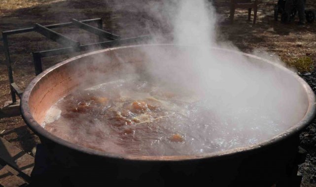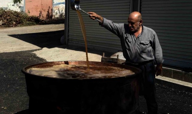 Gaziantep'te bağlardan toplanan üzümlerin imece usulüyle sıkılarak kazanlarda kaynatılmasıyla elde edilen pekmez, doğal üretim yöntemlerinin kattığı lezzetle talep görüyor.