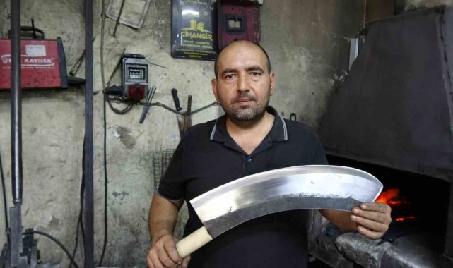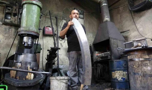 Çapa, balta, kazma, tırmık, bıçak, satır ve dahre gibi aletlerin hem tamirini hem de üretimini yaptığını belirten Kaz, "Sabah başlayıp öğlen 12.00'a kadar bu çekici vuruyoruz. Seri ve hızlı bir şekilde demire vurduğumuz için çekiç sayısını saymamız mümkün değil. Mesleğimiz kolay değil. Normal bir çelik malzemeyi bıçağa, et zırhına ve baklava dilim bıçağına döndürüyoruz. Demire model veriyoruz. Bir de yapmış olduğumuz ürünlerin hepsi tamamen dövmedir. Dövme olmayan ürün dükkanımızdan çıkmaz" diye konuştu.