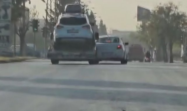 Çekicinin, önündeki seyir halinde olan araca ve daha sonrasında kırmızı ışıkta bekleyen 6 araca çarpma anları ise başka bir araçtakiler tarafından cep telefonu kamerasına kaydedildi. Facianın eşiğinden dönüldüğü anlarda görüntüyü kaydedenlerin tepkileri ve bir kişinin ise 'çok yaklaşma' şeklindeki söylemi dikkat çekti.