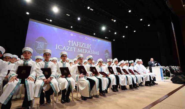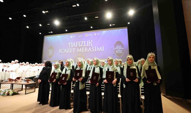 İl Müftülüğüne bağlı Kur'an kurslarında hafızlık eğitimini başarılı bir şekilde tamamlayarak mezun olan 107 kız ve 211 erkek öğrenci, düzenlenen "Hafızlık İcazet Merasimi" töreninde icazet belgelerini dualar eşliğinde aldı.