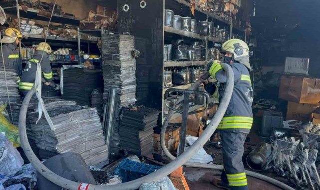 Gaziantep'te hırdavat malzemeleri satılan iş yerinde çıkan yangın, itfaiye ekipleri tarafından söndürüldü.