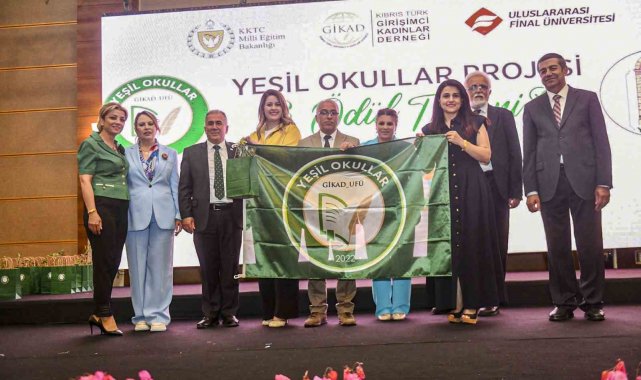 Kıbrıs'ta düzenlenen törende, çevreye duyarlı kurum ve projeler ödüllendirilirken, Yeşil Bayrak ödüllerini Sevinç Göymen Ortaokulu adına Okul Müdürü Faruk Ulutaş, Mehmet Alevli İlkokulu adına ise Okul Müdürü İsmet Hozatlıoğlu aldı.