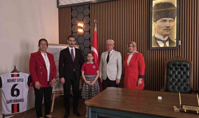İlçe Milli Eğitim Müdürü Mustafa Çetin, Atatürk İlkokulu Müdürü Süreyya Aslan, 4/C sınıf öğretmeni Fatma Gökşen ve 4. sınıf Öğrencisi Nehir Kahiye İslahiye İlçe Kaymakamı Mehmet Soylu'yu ziyarette bulundu.