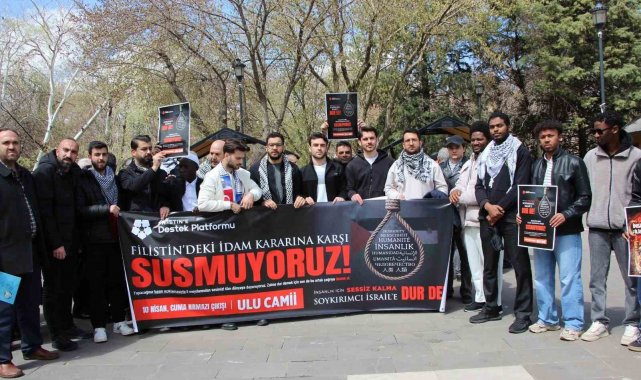 Ulu Camii önünde düzenlenen basın açıklamasında, İsrail'i protesto edilirken kalabalık sık sık tekbir getirdi. "Filistin'deki İdam Kararına Karşı Susmuyoruz" temasıyla düzenlenen basın açıklamasında, kalabalık İsrail'i kınayan sloganlar attı.
