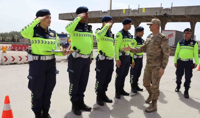 Gaziantep İl Jandarma Komutanlığı ekipleri, "1 Kural 1 Ömür, Yolun Sonu Bayram Olsun" mottosuyla trafik kazalarının önüne geçmek için Ramazan Bayramı boyunca alınan tedbirler kapsamında tatilde yola çıkan sürücülere güvenli trafik ve güvenli sürüş hakkında bilgilendirmeler yaptı. Gaziantep İl Jandarma Komutanı Tümgeneral Halil Şen de asayiş ve trafik uygulama noktalarını ziyaret ederek yerinde denetimlerde bulundu ve görevi başındaki tüm personelin bayramını kutladı.