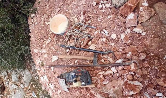 Yapılan aramalarda ise suçta kullanılan 5 adet kazı malzemesi, 1 adet hilti, 2 adet levye demiri, 1 adet balyoz, 1 adet el testeresi, 3 adet murç, 6 adet matkap ucu ve 3 metre halat ele geçirildi.