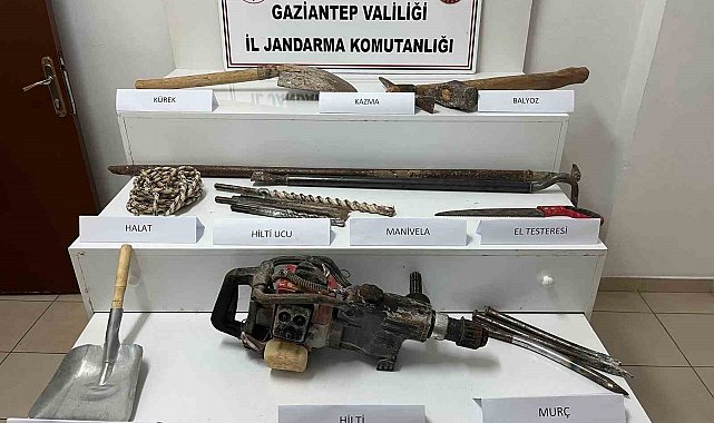 Gaziantep İl Jandarma Komutanlığı ve Cumhuriyet Başsavcılığı koordinesinde tarihi eser kaçakçılığının önlenmesine yönelik çalışma yapıldı. Çalışmalar çerçevesinde, Araban ilçesinde icra edilen önleyici kolluk devriyesi esnasında define bulmak amacıyla izinsiz kazı yaptığı tespit edilen T.K., B.Ö., C.Ö. ve M.K. isimli şüpheli şahıslar suçüstü yakalandı. Gözaltına alınan şüpheli şahıslar hakkında yasal işlem başlatıldı.