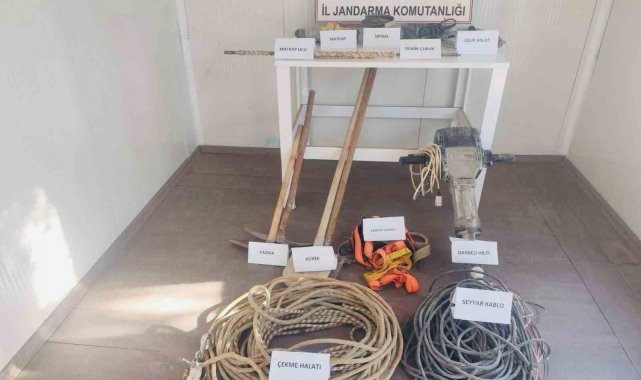 Gaziantep İl Jandarma Komutanlığı ekipleri ve Cumhuriyet Başsavcılığı koordinesinde Şahinbey ve Araban ilçelerinde tarihi eser kaçakçılığının önlenmesine yönelik operasyon düzenlendi. Operasyonda, define bulmak amacıyla izinsiz kazı yaptığı tespit edilen C.E., M.R.E.,E.Y., M.R.T., M.T., A.D., B.H., N.Ş., ve B.Ş. isimli şüpheliler kaçmaya çalıştıkları esnada suçta kullandıkları detektör ve kazı malzemeleri ile birlikte suçüstü yakalandı. Operasyon kapsamında, 2 adet dedektör ve kumandası, 3 adet kazma, 3 adet kürek, 2 adet matkap ucu, 1 adet darbeli hilti, 1 adet ispiral makinesi, 1 adet matkap, 2 adet emniyet kemeri, 1 adet demir çubuk, 2 adet çelik halat, 3 adet seyyar uzatma kablosu ele geçirildi.