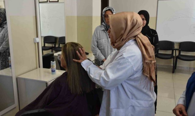 Şahinbey Belediyesi'ne bağlı Binevler Sosyal Tesisi'nde kadınlara yönelik kuaförlük eğitimine kadınlar yoğun ilgi gösteriyor.