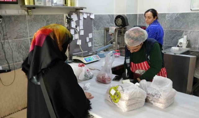 Hazırladıkları yuvalamayı poşetleyip müşterilere teslim eden işletmeler, bayram yoğunluğu nedeniyle randevu usulüyle çalışıyor. Yuvalama taneleri bayram sabahı yoğurt, et ve nohutla pişirildikten sonra damakları şenlendiriyor.
