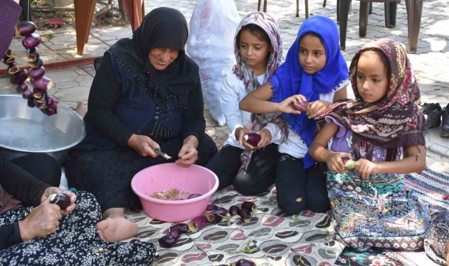 Biber ve patlıcanları kurutmalık yapmak için oyduklarını söyleyen Tuba Yılmaz ise "Kış hazırlıklarımıza başladık. Komşularla toplanıp patlıcan, biber ve konserve yapıyoruz. Birbirimizi çok seviyoruz. Bu vesileyle bir araya geliyoruz ve çok mutluyuz. Kurutmalık sebzeler bizim vazgeçilmezimizdir. Patlıcan ve biber dolması kışın çok lezzetli oluyor. Kızartması da çok güzel oluyor. Kış hazırlıklarımız Mayıs ayında başlıyor, Ekim ayına kadar devam ediyor. Tüm ürünlerimizde kendi tarlamızdan geliyor. Biber, patlıcan, domates ve kabak gibi ürünlerimizi kış için hazırlıyoruz" diye konuştu.