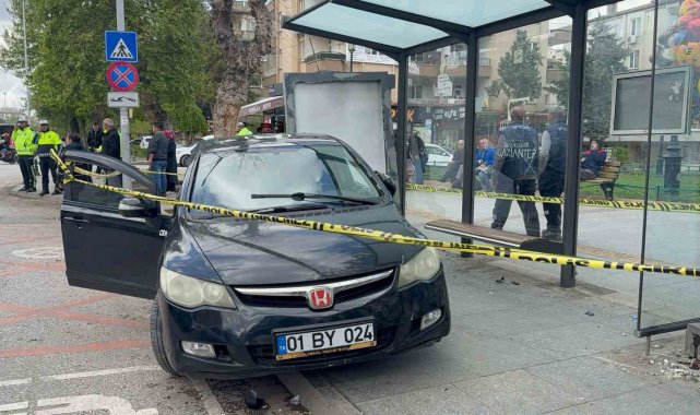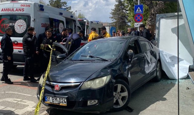 Gaziantep'te kontrolden çıkan otomobil, otobüs durağına daldı: 5 yaralı