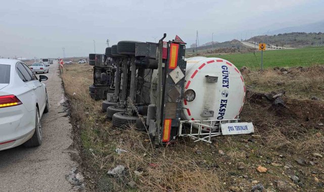 Gaziantep'te seyir halindeki bitkisel yağ dolu tanker sürücüsü yolda hakimiyetini kaybedip devrildi. Devrilen tankerdeki yağın bir kısmı ziyan oldu.