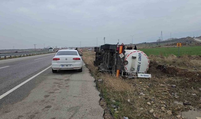 Gaziantep'te kontrolden çıkan tanker yan yattı