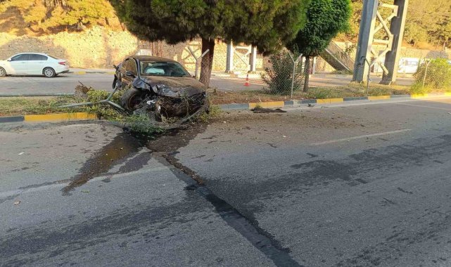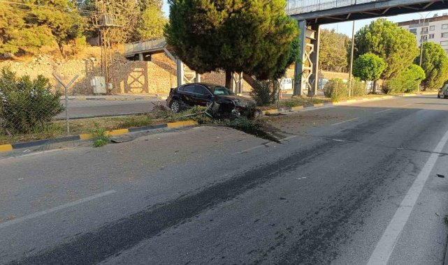 Gaziantep'in İslahiye ilçesinde kontrolden çıkan otomobilin savrularak refüjdeki korkuluklar ve ağaca çarpması sonucu 1 kişi yaralandı.