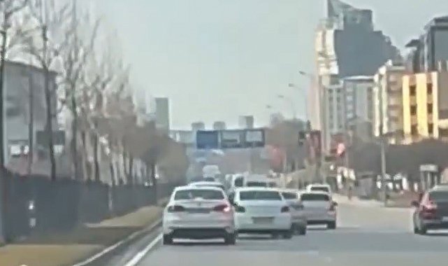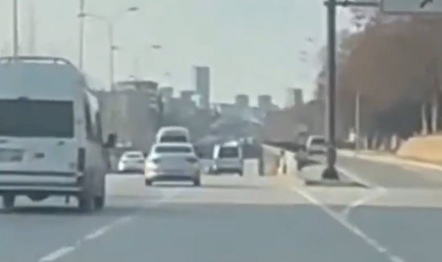 İpek Yolu'nda makas atarak ilerleyen plakası ve sürücüsü belirlenemeyen iki araç trafikte tehlike saçtı. Sürücülerin hem kendilerinin hem de diğer sürücülerin hayatını tehlikeye attığı o anlar araç kamerasına yansıdı. Trafiği tehlikeye sokan iki araç bir süre sonra gözden kayboldu.