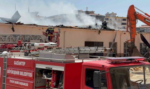 Gaziantep'te meslek lisesinin mobilya atölyesinde çıkan yangına müdahale çalışmaları sürüyor. Ekipler, yangını söndürmek için çatıyı yıktı.