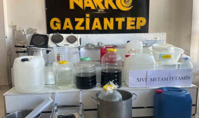 Gaziantep Emniyet Müdürlüğü Narkotik Suçlarla Mücadele Şube Müdürlüğü ekipleri ve Cumhuriyet Başsavcılığı koordinesinde narkotik operasyonu düzenlendi. Özel harekat destekli operasyon çerçevesinde belirlenen adreslere baskın yapıldı. Koçbaşı ile girilen adreslerde hassas burunlu dedektör köpek ile yapılan aramalarda 18 litre sıvı metamfetamin, 2 kilo 550 gram metamfetamin ve 32 litre metamfetamin imalatında kullanılan kimyasal madde ile çeşitli malzemeler ele geçirildi. Operasyon sonucunda 3 şüpheli şahıs gözaltına alındı.