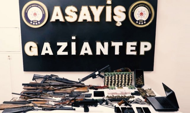 Gaziantep İl Emniyet Müdürlüğü Asayiş Şube Müdürlüğü ekipleri ve Cumhuriyet Başsavcılığı koordinesinde kent genelinde nitelikli dolandırıcılık suçu kapsamında operasyon düzenledi. Operasyonda, 19 adet ruhsatsız av tüfeği, 2 adet ruhsatsız tabanca, 2 adet bilye atar tabanca, 1 adet ruhsatsız uzi tabanca, 1 adet kurusıkı tabanca, 4 bin 350 adet fişek186 bin TL nakit para ve çok sayıda dijital materyal ele geçirildi.