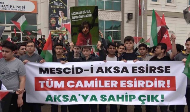 Gaziantep'te imam hatip ortaokul ve lise öğrencileri, İsrail'in Mescid-i Aksa'yı ibadete kapatmasına ve Filistinli esirlere yönelik idam kararına tepki gösterdi.