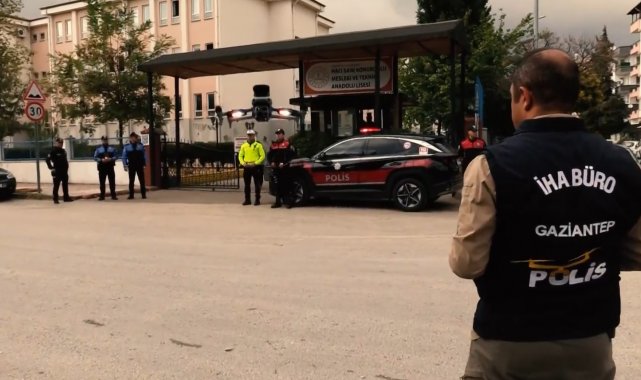 Gaziantep'te polis ekiplerince okul çevrelerinde dron destekli huzur ve güven uygulaması yapıldı.
