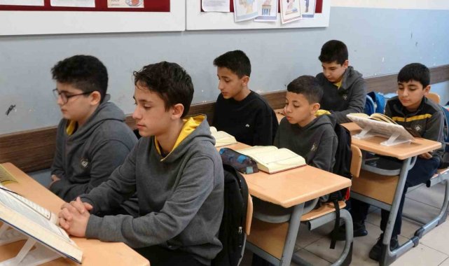 Gaziantep'te Ramazan ayının manevi atmosferini okullara taşıyan öğrenciler, her gün mukabele sünnetini ve geleneğini yaşatarak birlikte Kur'an-ı Kerim okuyor.