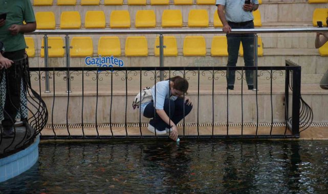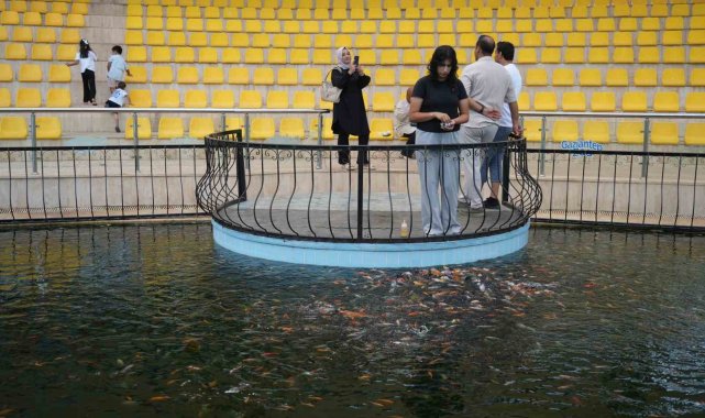 Gaziantep Doğal Yaşam Parkı'nda yeni açılan Tropikal Koi Parkı'ndaki 500 tonluk havuzda Japonya ve Çin'nden getirilen yavru koi balıkları ziyaretçilerden büyük ilgi görüyor. Rengarenk koi balıklarını ziyaretçiler biberonla besliyor.