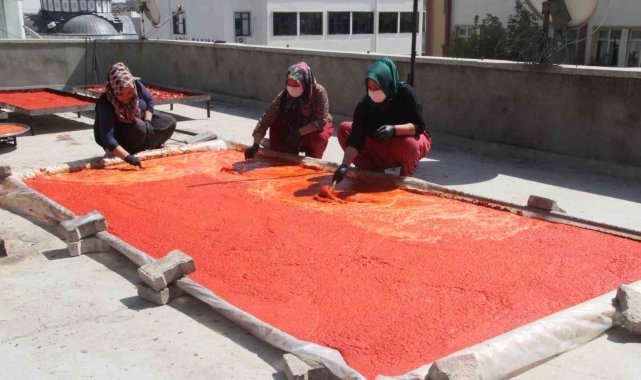 Salça işletmecisi Mehmet Kaya, kentte yetişen biberlerin tarlalardan veya hal pazarından getirilerek kadınlar tarafından temizlendiğini ve makinelerden geçirildikten sonra güneşte biber salçasına dönüştüğünü söyledi.