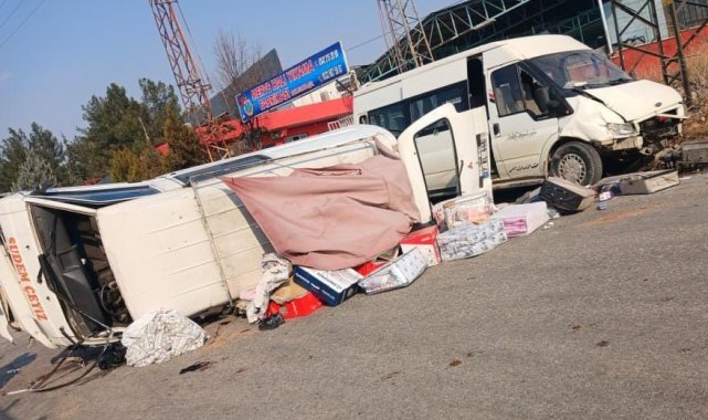Bir kişinin ölümü, 3 kişinin de yaralanmasıyla sonuçlanan feci kaza anları ise çevredeki bir iş yerinin güvenlik kamerasına yansıdı. Görüntülerde, kavşakta farklı yönlerden gelen servis ile panelvan tipi aracın hızla çarpışma ve sonrasında araçların savrularak devrilme anları yer aldı.