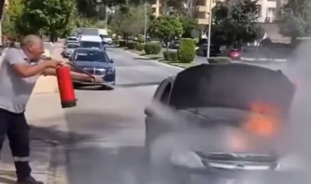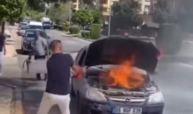 Gaziantep'te seyir halindeki bir otomobil alev aldı. Motor kısmından çıkan yangın, çevredeki vatandaşların müdahalesiyle söndürüldü.