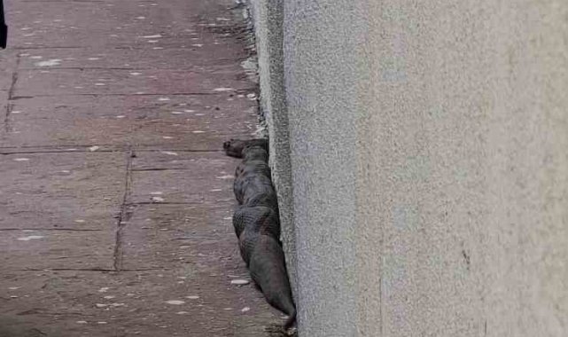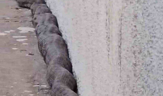 Gaziantep'in Şahinbey ilçesinde bir sitede ortaya çıkan yılan, mahalle sakinlerinde paniğe neden oldu.