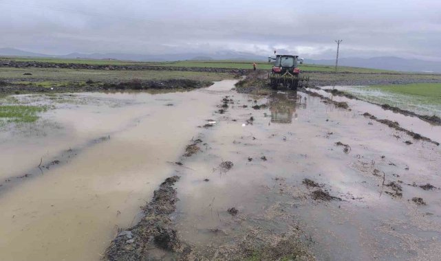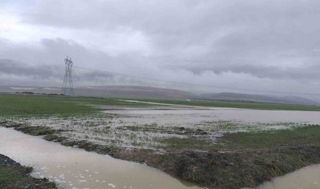 Gaziantep'in Nurdağı ilçesinde 2 gündür etkili olan sağanak su taşkınlarına neden olurken, ekili tarım arazileri sular altında kaldı.