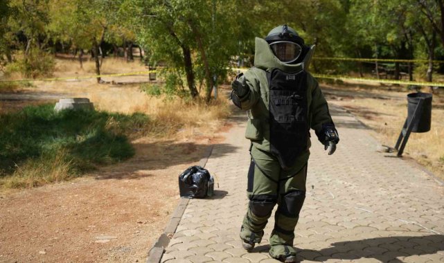 Öte yandan, senaryo gereği olay yerinde bir şüpheli paket daha bulunduğu ihbarı üzerine bölgeye bomba imha uzmanları çağırıldı. Eğitimli köpeklerle bomba imha uzmanlarınca alan boşaltılarak önlem alındıktan sonra şüpheli paket fünyeyle patlatılıp imha edildi.