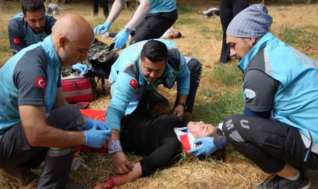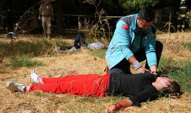 Erikçe Ormanı'nda düzenlenen tatbikatta temsili ölü ve yaralılara müdahale eden ekiplerin müdahale süresi, davranışlarında sergiledikleri performans ile ölü ve yaralı yakını rollerini çok iyi oynaması alkış topladı. Gerçeği aratmayan tatbikatın her aşaması nefes kesen görüntülere sahne oldu. Makyajla gerçeğe yakın ölü ve yaralı görünümüne kavuşturulan kişilere müdahale eden ekipler tatbikatı başarıyla tamamladı.