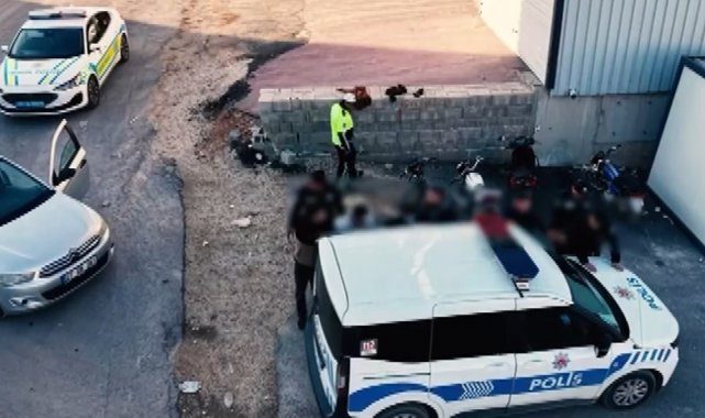 Gaziantep Emniyet Müdürlüğü'ne bağlı Bölge Trafik Denetleme Şube Müdürlüğü ve İHA Büro Amirliği ekipleri, kentteki çevre yolunda yarış yapan motosikletlere yönelik dron destekli denetim yaptı. Yapılan denetimlerde plakasız, sürücü belgesiz ve yetersiz ehliyetle araç kullanan, abartı egzoz bulunduran, kask takmayan ve ters yönde araç kullanan 38 motosiklet sürücüsüne cezai işlem uygulandı. Ekipler, 10 motosikleti de trafikten men etti.