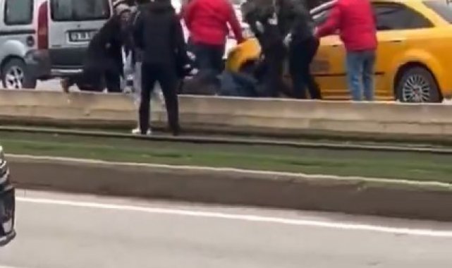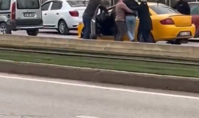 Gaziantep'te trafikte yaşanan tartışmanın kavgaya dönüşmesi sonucu aracında bulunan taksiciye meydan dayağı atıldı. Dehşet anlarının saniye saniye cep telefonu kamerasına yansıdığı anlarda araya girmeye çalışan vatandaşların çabası da yetersiz kaldı.