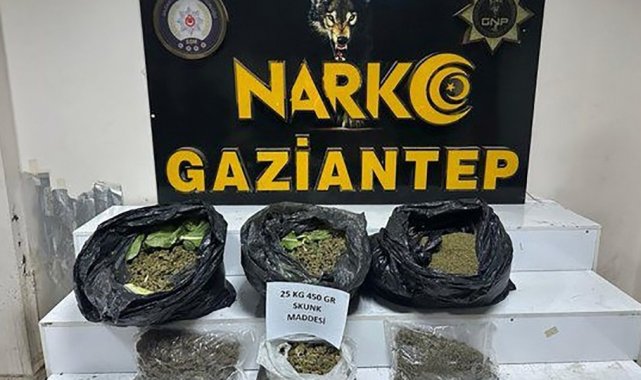 Gaziantep İl Emniyet Müdürlüğü'ne bağlı Narkotik Suçlarla Mücadele Şube Müdürlüğü ekipleri, Cumhuriyet Başsavcılığı koordinesinde son 10 gün içerisinde uyuşturucu tacirlerine yönelik çok sayıda operasyon yaptı. Teknik ve fiziki takip sonucu yapılan operasyonlar çerçevesinde çok sayıda adrese baskın düzenlendi. Adreslerde yapılan adli aramalar sonucunda 37 kilo 879 gram skunk, 19 kilogram metanfetamin, 3 kilo 431 gram sentetik kannabinoid, 1 kilo 400 gram kokain, 7 bin 700 adet uyuşturucu hap, 188 adet likit esrar ele geçirildi.