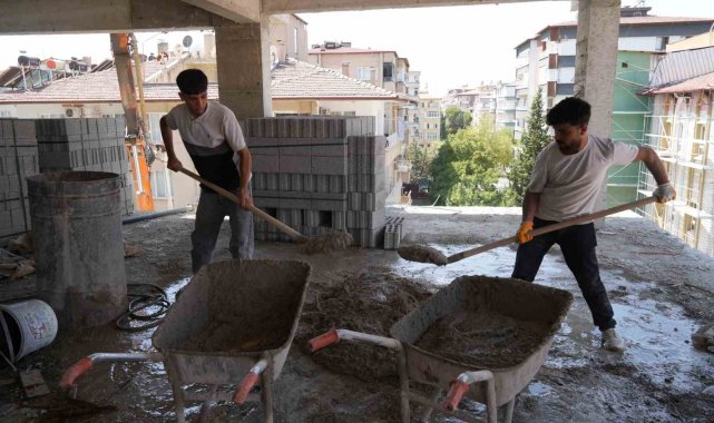 Tekrar inşa edilen binalarda hummalı çalışma sürüyor