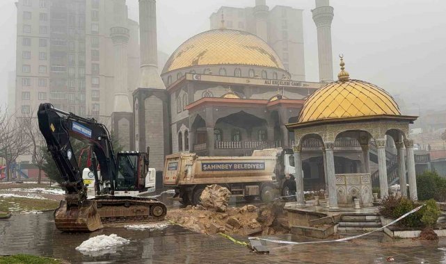 Gaziantep'te yoğun yağış sonrası cami avlusu çöktü