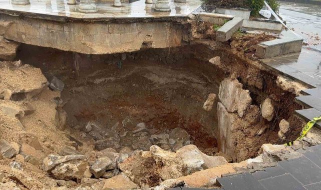 Gaziantep'te iki gündür etkili olan yoğun yağış nedeniyle bir caminin avlusunda çökme meydana geldi. Çökme sırasında kimsenin olmaması faciayı önlerken olay yerinde güvenlik önlemi alındı.