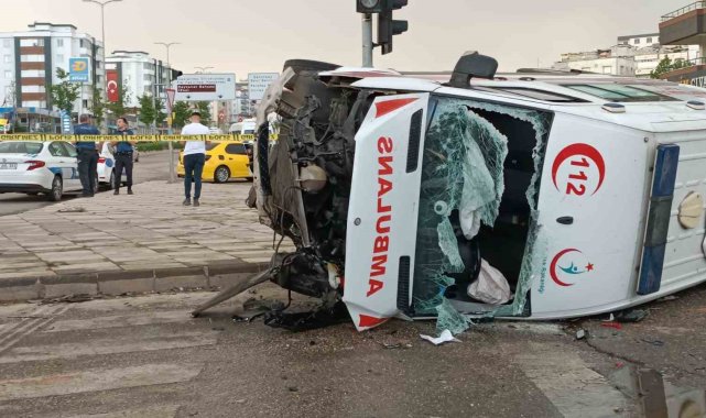 Gaziantep'te ambulans, kavşakta bir araçla çarpışarak devrildi. Kazada ...