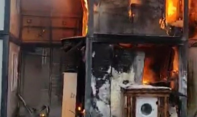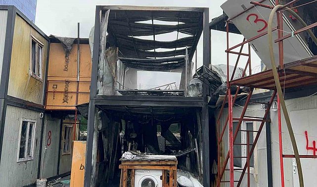 Gaziosmanpaşa Adliyesi inşaatı şantiyesinde işçilerin kaldığı konteyner alevlere teslim oldu
