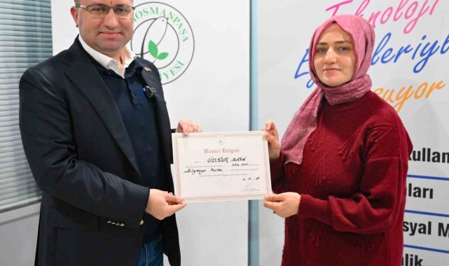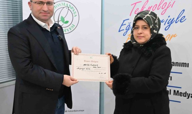 Gaziosmanpaşa Belediyesi'nce düzenlenen 'Annelere Teknoloji Eğitimi'ni başarıyla tamamlayan kursiyerlere sertifikaları verildi.