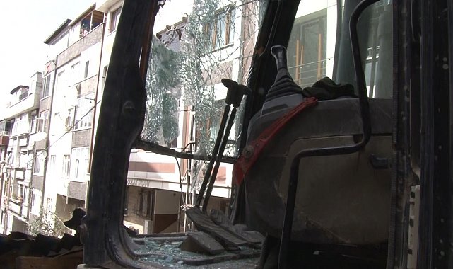 Gaziosmanpaşa'da binadan kopan tahta parçası aracın camını parçaladı: Kepçe operatörü yaralandı