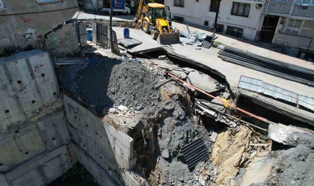 Gaziosmanpaşa'da inşaat çalışmaları esnasında yol çöktü